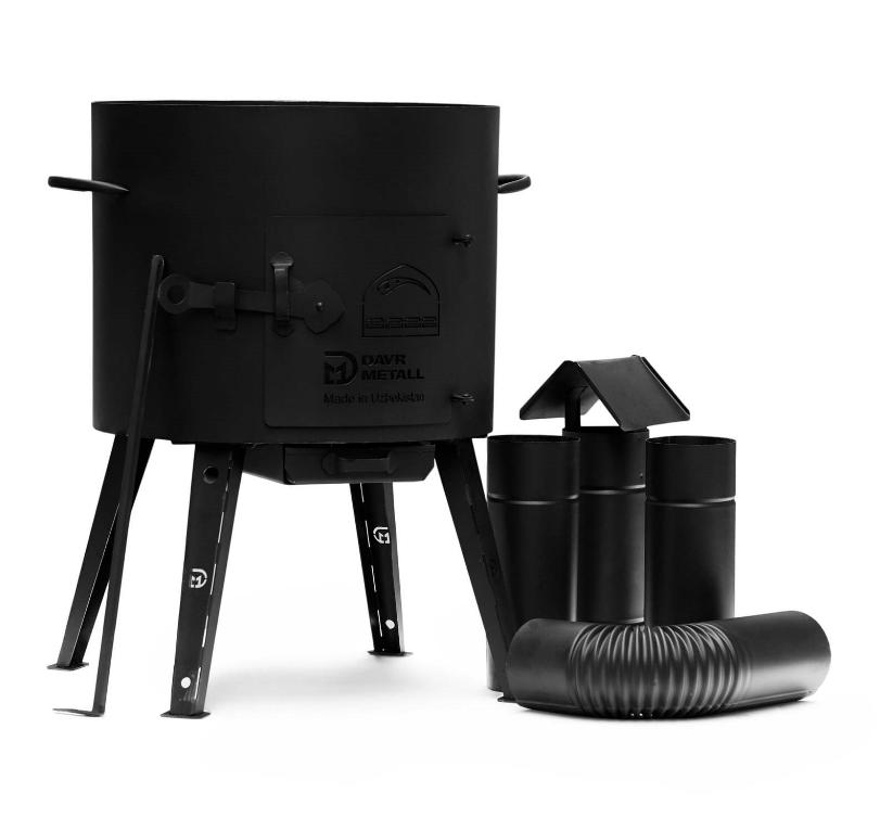 Entdecken Sie den Kazan-Ofen Uchag 36cm - ein vielseitiges Outdoor‑Kochsystem mit 10l Namangan Kazan + Kellen Set.