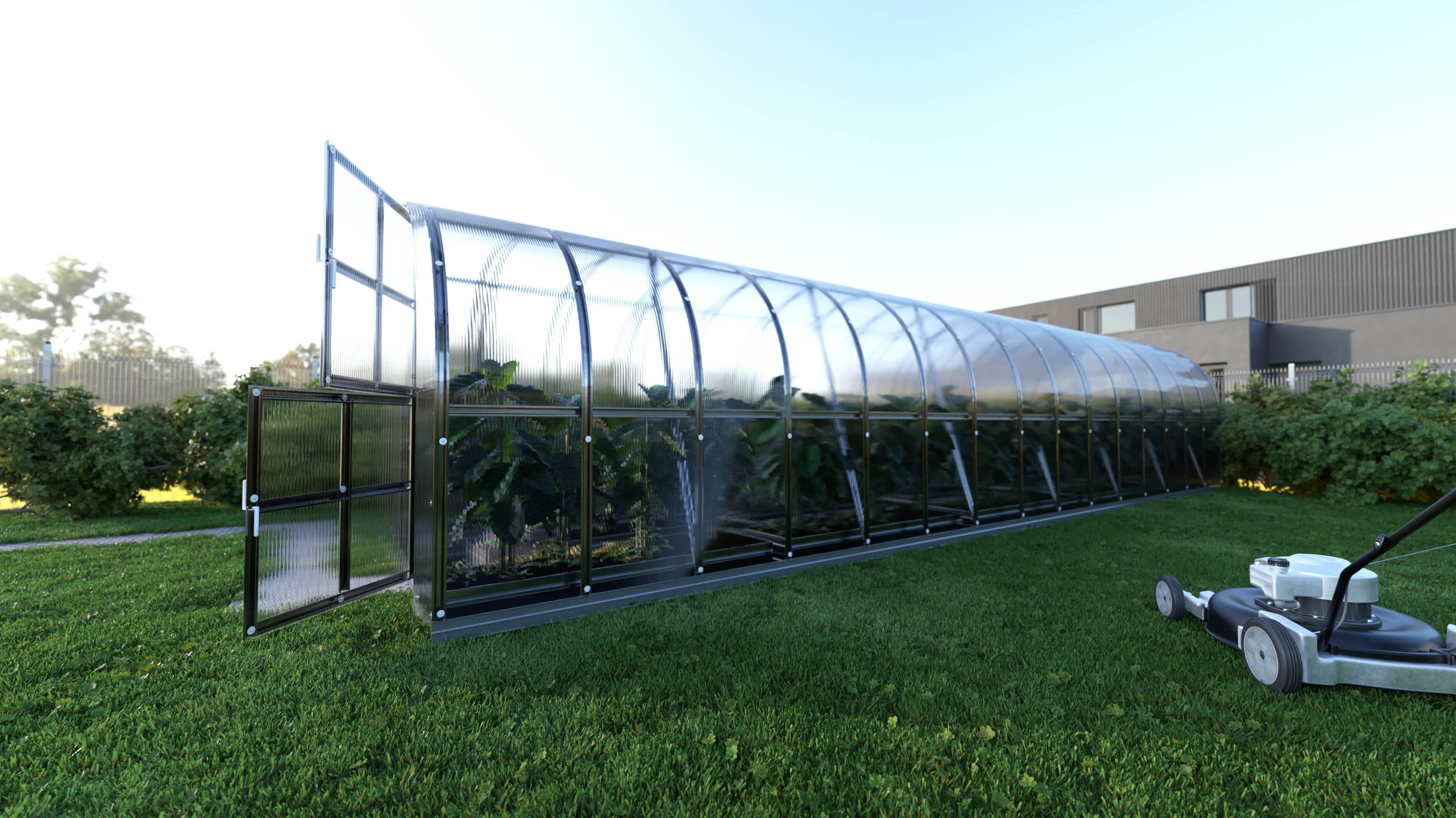 Das Gewächshaus ARK kombiniert verzinkte Stahlprofile (1 mm) mit UV-beständigem 4mm Polycarbonat für optimale Lichtstreuung und Wärmeisolation. Die 3 m Breite und 2,18 m Höhe schaffen ein komfortables Arbeits- und Pflanzenklima. Die Länge ist modular in 2-m Schritten erweiterbar - ideal zum Mitwachsen Ihrer Anbauziele.