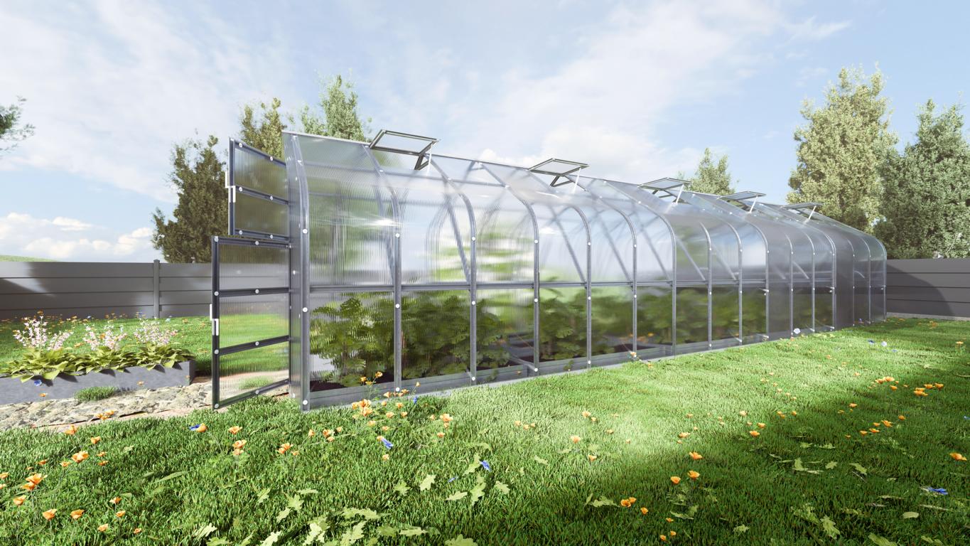 bieten ideale Bedingungen für den Anbau empfindlicher Pflanzen, Gemüse und Obst oder zum Überwintern von Blumen. In einem Polycarbonat-Gewächshaus bestehen die „Fenster“ aus strapazierfähigem Polycarbonat, nicht aus Glas, das schlag und hagelbeständig ist.