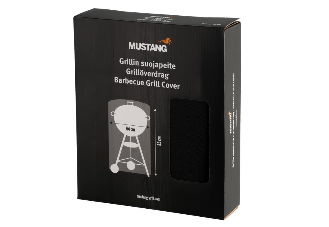 Grillabdeckung für Holzkohlegrills. 64 x 85 cm, PVC-beschichtet, 500x300D Polyestergewebe, 320 g/m2, 80 Stunden UV-Schutz, frostsicher bis -15 C. Mustang-Logoanhänger in der Innennaht.