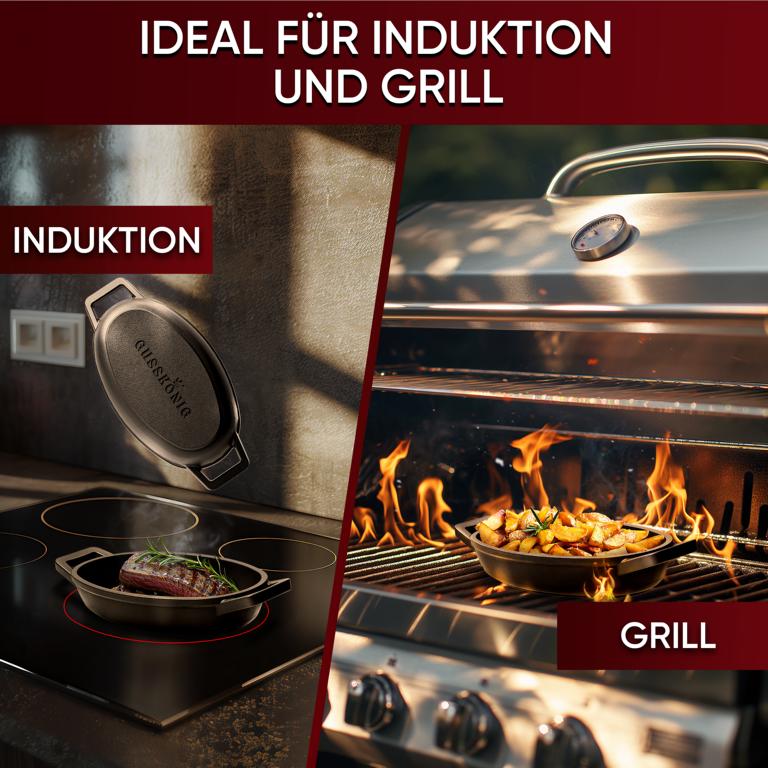 Kompatible Geräte | Backofen, Gasgrill, Holzkohle, offene Flamme, Induktion* und Elektro |