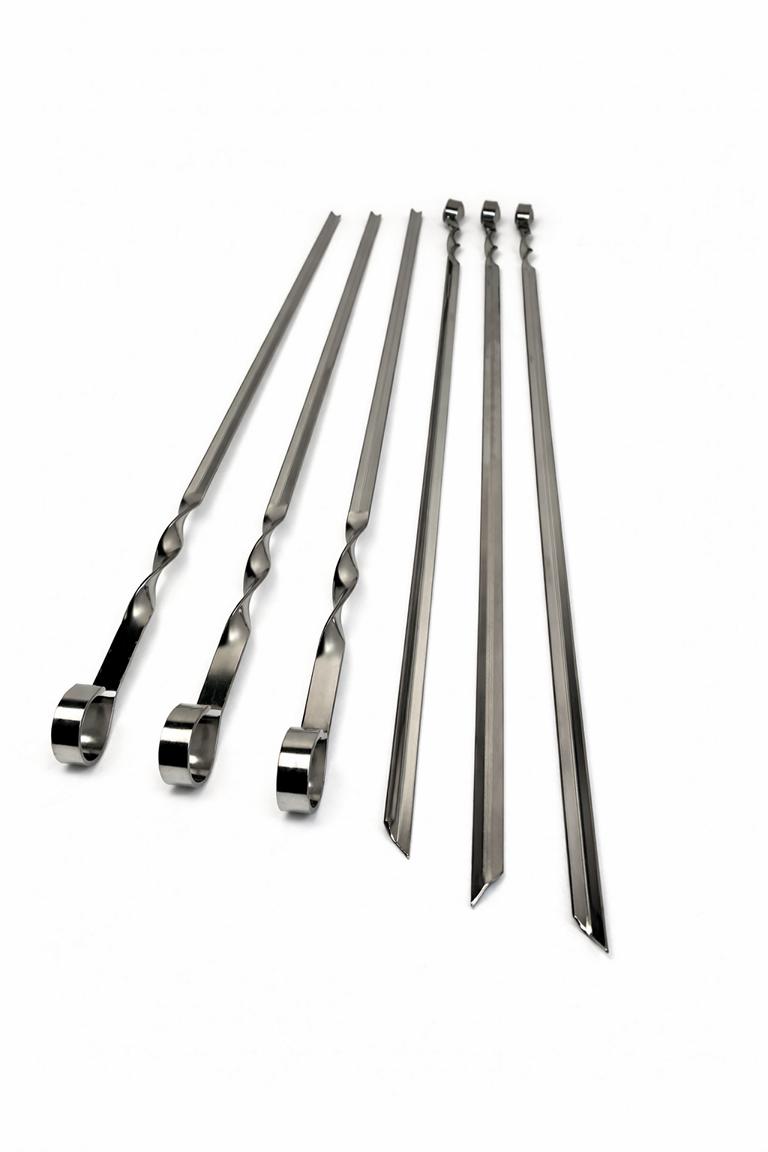 Schaschlik Spieße Edelstahl Fleisch Spieße Shampura Köftespiesse Mustang. Wirklich robuste 60 cm lange Schaschlik-Grillspieße. Satz von 6 Stück. Dicke des Spießes 1,8 mm. Twist auf dem Spieß!